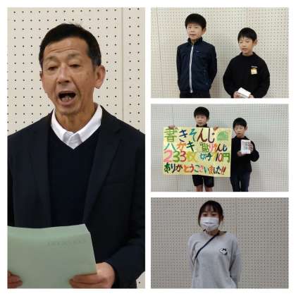 皆さんに協力してもらった書き損じはがきと貼り損じ切手が集まりました。集まったはがきや切手をユニセフに送ります。たくさんの子どもたちのために使われます。ご協力ありがとうございました。