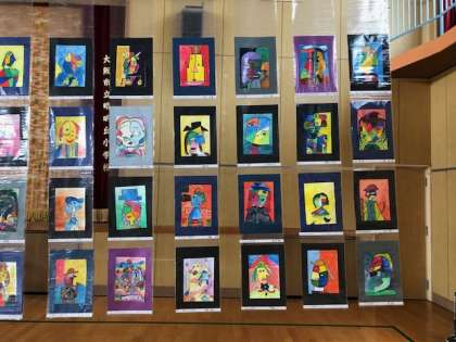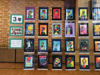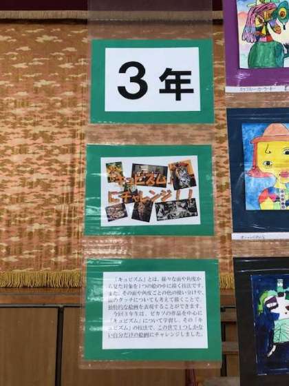 今回3年生は、ピカソの作品を中心に「キュビズム」について学習し、その「キュビズム」の技法で、この世で1つしかない自分だけの絵画にチャレンジしました。