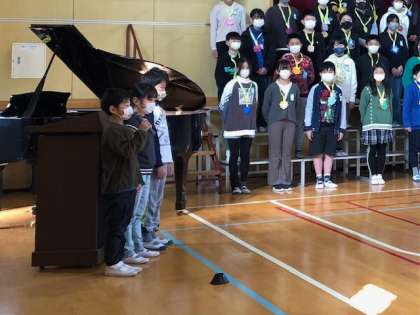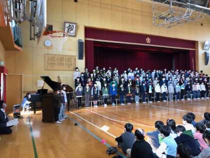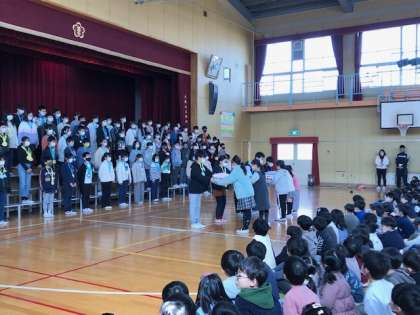 児童代表からの閉会の言葉で、お祝い集会を終えました。