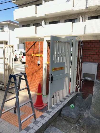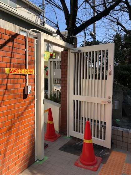 管理作業員さんが、正門扉の塗装作業を行っています。学校の出入り等でご不便をおかけしますが、ご協力よろしくお願いします。