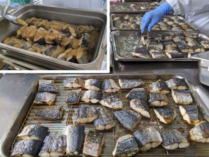さごしは料理酒、しょうが汁で下味をつけて焼き、だいこんおろし、みりん、うすくちしょうゆを合わせたたれをかけています。