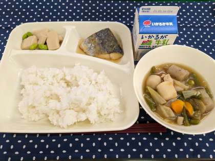 3月10日(金)のこんだては「さごしのおろしじょうゆかけ、さといもと野菜の含め煮、高野どうふの煮もの、ごはん、牛乳」です。