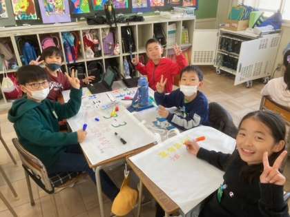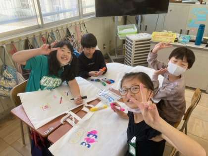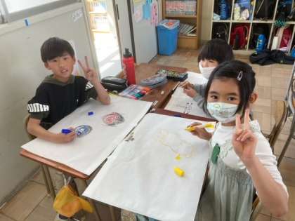 作品ぶくろに好きな絵を描き込みました。お絵描きが終わったら一年間の作品を持って帰りますので、頑張りや思い出を聞いてあげてください。
