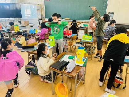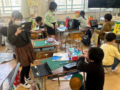 友達と協力し、楽しそうに色々な角度から撮影していました。