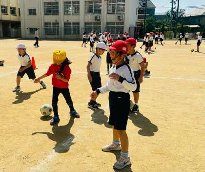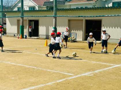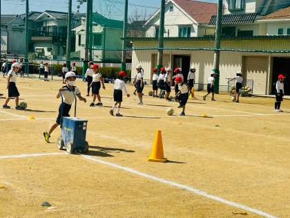 相手チームにコートから自分のボールを蹴り出されないように、自分の足元でボールをドリブルすることができました。