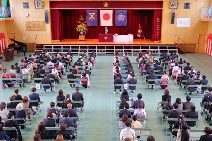 校長先生から子どもたちへの門出の言葉です。進学にあたって大切にしてほしいことは、1,出会いを大切に、2,自分を大切に、3,感謝の気持ちを大切に、です。子どもたちは、うなずきながら真剣に耳を傾けていました。