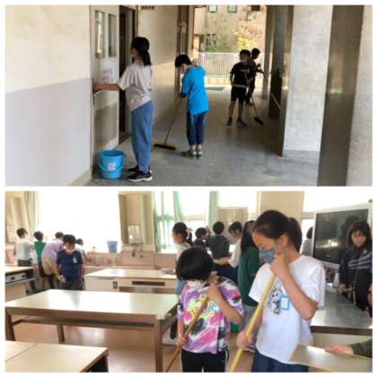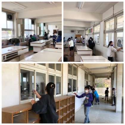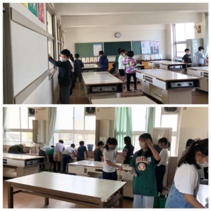 自分たちがこれから学ぶ家庭科教室を、美しく整えることはとても大切なことです。みんな一生懸命に取り組んでいました。