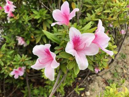 ピンクとホワイトのヒラドツツジが咲き始めました。