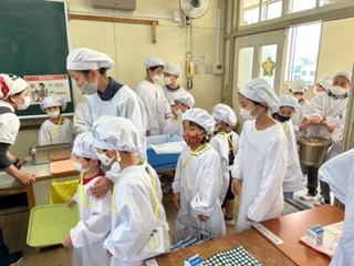 配膳後は、かわいい1年生の「ありがとうございました。」の声に見送られ、「しっかり食べてね。」「後片付けもがんばろうね。」と、教室に戻っていきました。
