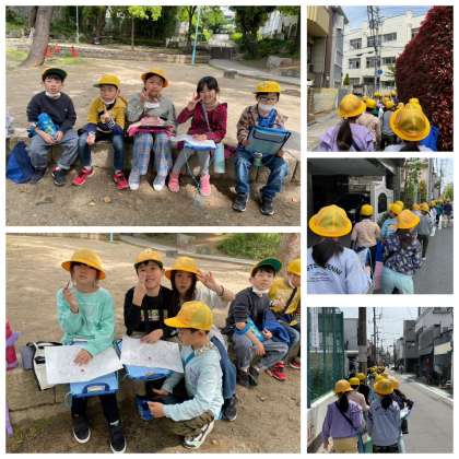 西回りチームと東回りチームに分かれて校区に何があるのか探検しました。