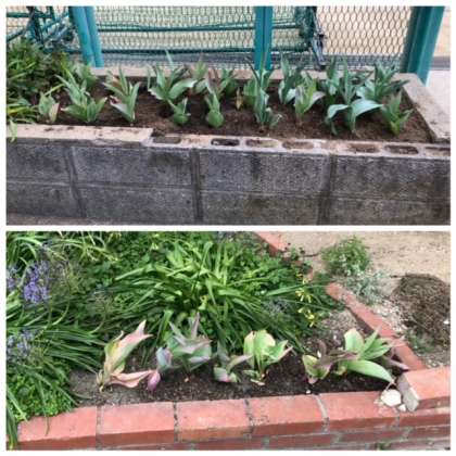 「ありがとう。来年も咲いてね。」と語りかけながら、校内のあちこちに移植しました。もうすぐ葉っぱが枯れると忘れ去られるのでしょうが・・・
