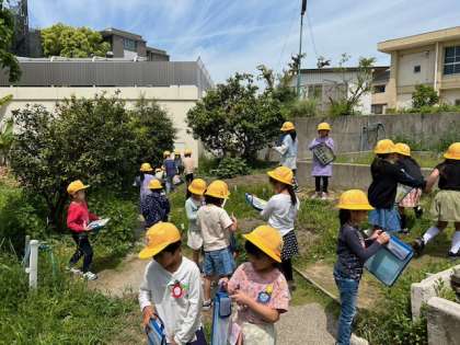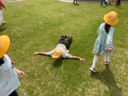 生活の春見つけをしに、自然観察園にいきました。芝生はふかふかで寝転がっていました。花や生き物などたくさん見つけることができました。
