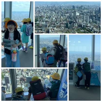 上空から見る天王寺公園、動物園、通天閣・・・少し遠くに大阪城・・・