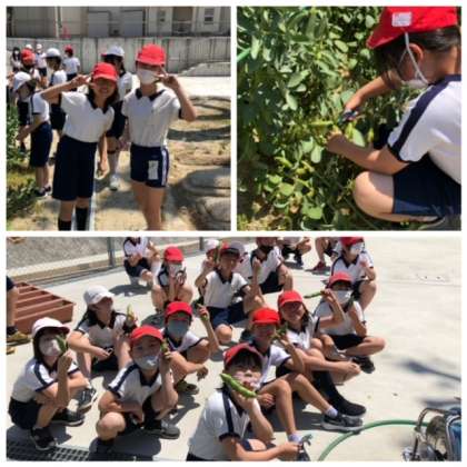 家庭科の授業で使う「そらまめ」を自分で収穫するという貴重な体験をしました。