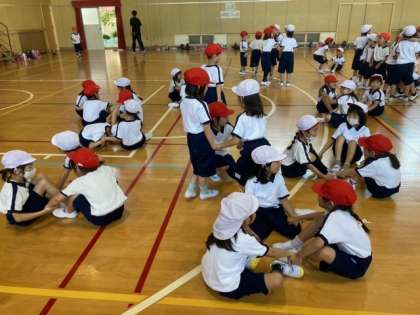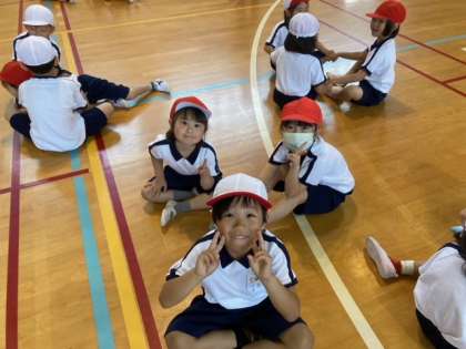 初めて立ち幅跳びの記録を取りました。自分の身長よりも前に跳べる子がいたり、友だちの応援をしている子がいました。