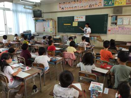 1年1組において教育実習生石田菜都実先生の研究授業