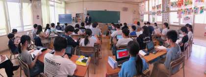 あらかじめタブレット内に準備されている資料を見ながら、自分の考えをノートにまとめた後、意見交流を行います。