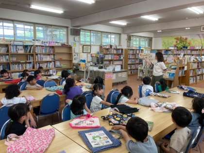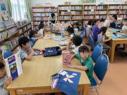 図書室に行きました。本の借り方も慣れてきました。「はらぺこへびくん」という本の読み聞かせをしてもらいました。「たべる!」「あーすごい!」と反応しながらしっかり聞いていました。