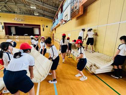 片付けも協力してきれいにマットを重ねることができました。