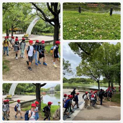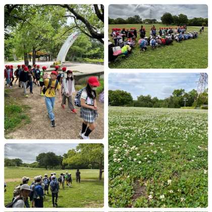 広場に向かって移動です。広場一面にシロツメクサがきれいに咲いています!