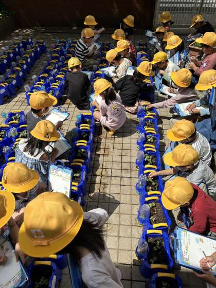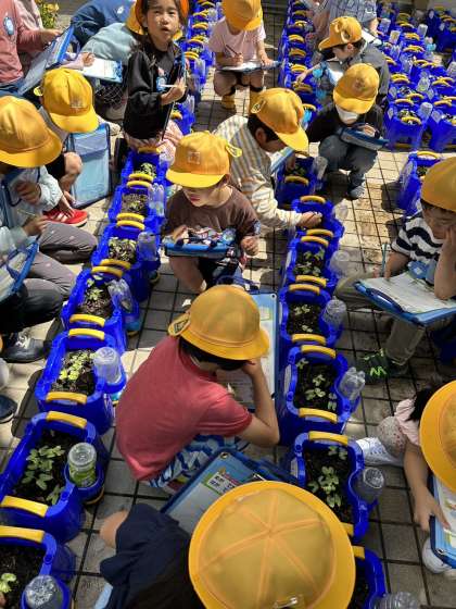 すごく真剣に芽を観察し、葉が緑色だけじゃなく黄色や赤色があることに気づいたり、茎の部分に注目して、毛みたいなものが生えていて、ふわふわしている!と新たな発見をしたりすることができました!