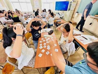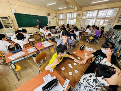 子ども達はかなり真剣にカードを取り合っていましたが、手が重なると自然にじゃんけんをしたり、「いいよ」と譲り合ったり、あたたかい雰囲気でゲームに取り組んでいました。
