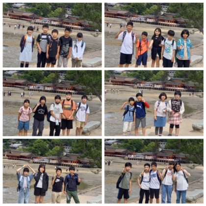 厳島神社の本殿をバックに記念撮影。