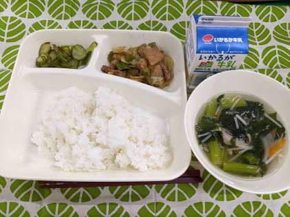 5月29日(月)のこんだては「ホイコウロー、中華スープ、きゅうりのピリ辛あえ、ごはん、牛乳」です。