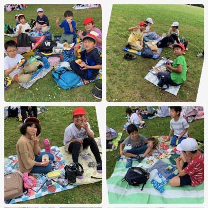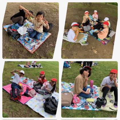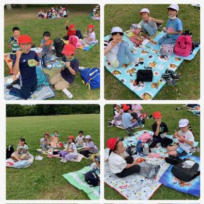 さあ、待ちに待ったお弁当の時間です!「先生!見て!からあげ。」「卵焼きおいしそう!」など、モリモリ食べています。