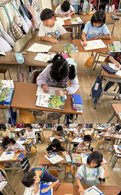 休み時間では、点つなぎが大流行!一人で黙々と完成させて、きれいに色塗りもしていました!