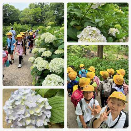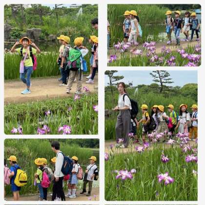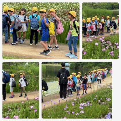 みんな、散策を楽しんでいます。ハナショウブや紫陽花がきれいです!