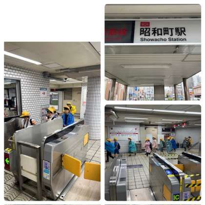 地下鉄昭和町駅に到着しました。保護者の皆さまに雨対策をしていただいたおかげで、子どもたちは、安心して帰って来れました。あと学校までもう少しです。みんながんばろう!