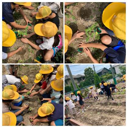 ゴールデンウィーク前にみんなで植えた植物の植え替え作業を行いました。