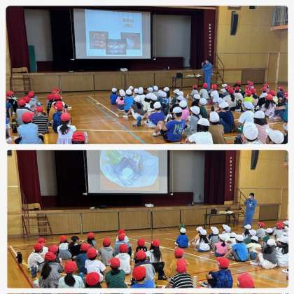 6月9日(金)、南部環境事業者センターの方をゲストティーチャーとしてお迎えしました。講堂で、ごみの出し方や資源ごみについての??×クイズをしました。知っていることや知らなかったことについて、いつも元気な4年生は、集中して職員の方のお話を一生懸命に聞いていました。