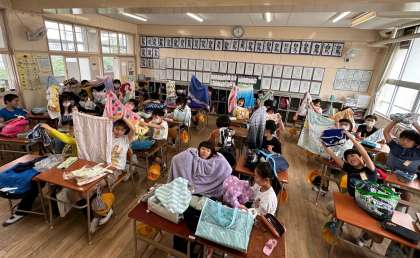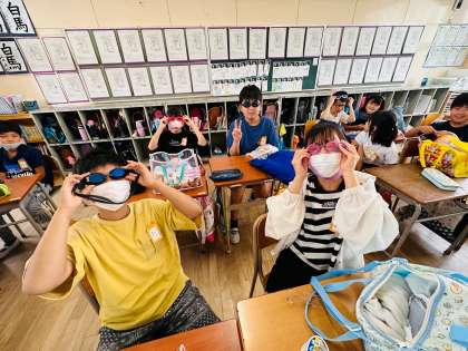 子ども達は、「ゴーグルを忘れてた!」「ラッシュガードに名前がないから、週末につけてもらおう。」と、友達と一緒に持ち物を見直していました。