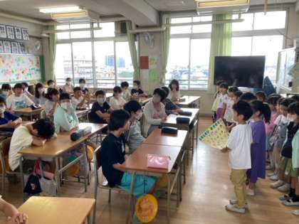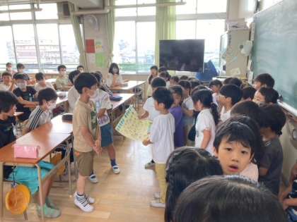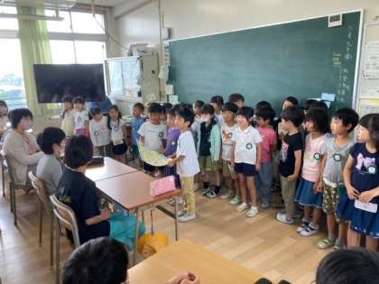 一年生から六年生にありがとうを伝えに行きました。ドキドキと緊張した様子でした。