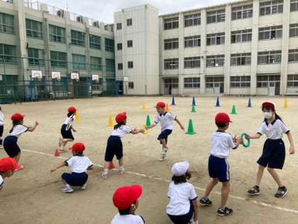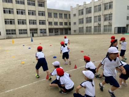 コーンは回って走る!フープはくぐる!ハードルは飛び越える!