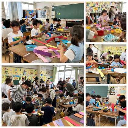 2年生は、図画工作の学習「わっかでつくろう」に取り組みました。