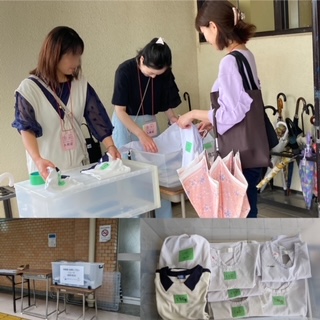 前年度から繰り越された体操服と給食エプロンがさほど多くはなかったのですが、配布には少しお並びいただきました。大きめのサイズや長袖とズボンが人気でした。