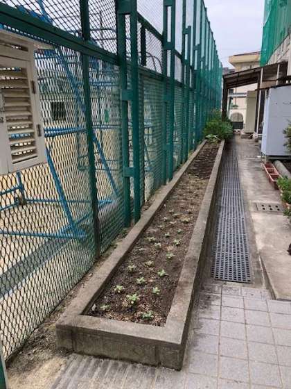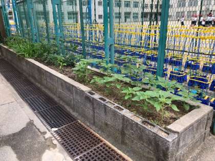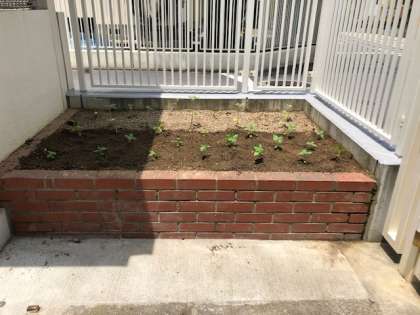 校内のいろんな場所の花壇に小さな苗が植えられています。