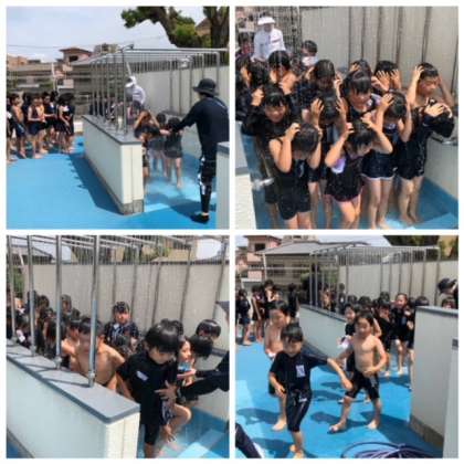 プールを清潔にしておくために、しっかりシャワーをあびます。