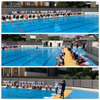 バディを確認して、いよいよハンドサインを見ながら、プールに入ります。