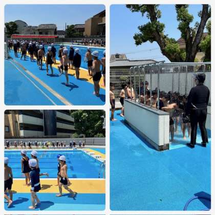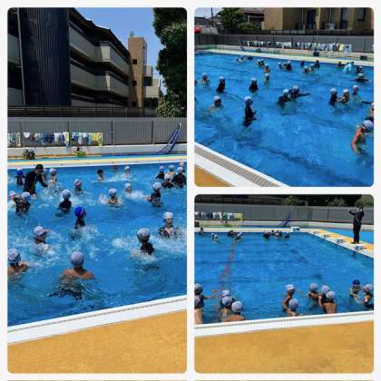 夏のような太陽の日差しが照りつける中、2年生は、水遊びを行いました。音楽に合わせて水慣れをしたり、「〇〇の術!」と忍者になりきったりしました。「忍術道場」の学習では、浮いたりもぐったり、ボビングをしたりとたくさん活動しました!子どもたちは、笑顔で気持ちよさそうに学んでいました。