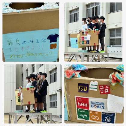7月3日(月)から7日(金)まで子ども服(赤ちゃん用から160cmくらい)を集めます。下着や帽子、靴下などは回収できません。難民など世界中で服を必要としている人に届けるための活動です。回収場所は、1階玄関と4階ユネスコルーム前です。ご協力よろしくお願いします。