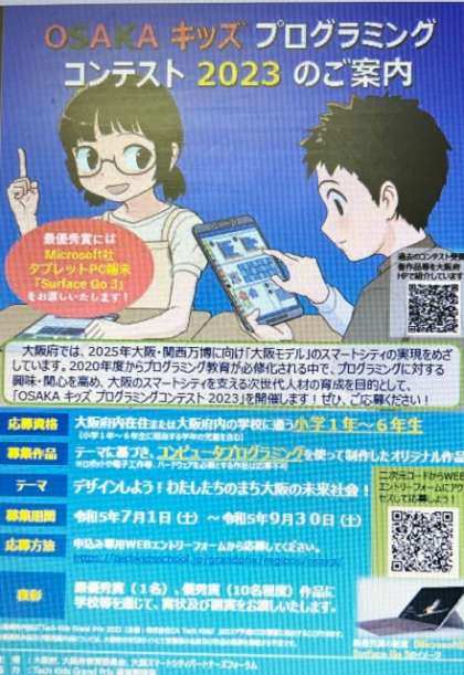 詳細は⇒OSAKAキッズプログラミングコンテスト2023のご案内