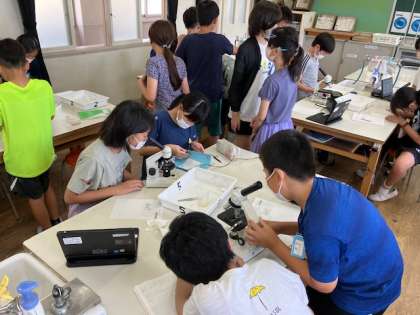 どの班も顕微鏡の使い方が上手で、すぐにプランクトンを見つけることができました。とんぼ池にたくさんの種類のプランクトンがいることがわかりました。