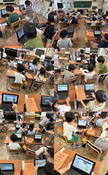 先週、初めて使用した際に不具合が生じて使えなかったタブレットは、ICT支援員さんに一台ずつ確認していただき、無事に使えるようになりました!心の天気やデジタルドリルなどは、もう自分たちでできました!のみ込みが早いです!