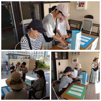 夏休みの子どもたちのプール指導の受付に、PTAの方々が協力してくださっています。