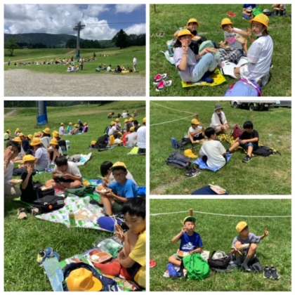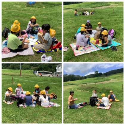 高原にシートを広げて、いただきます。
