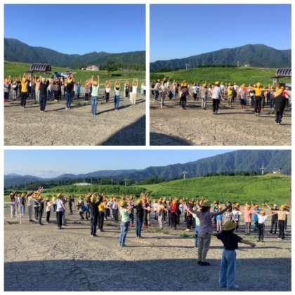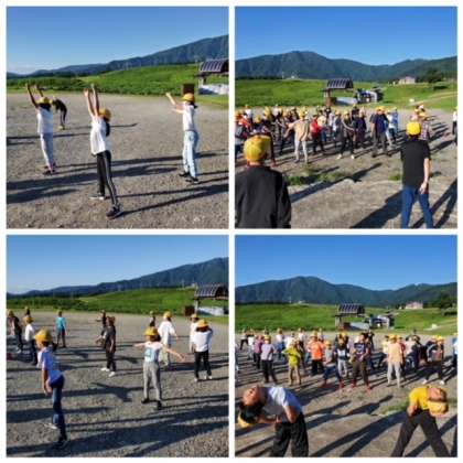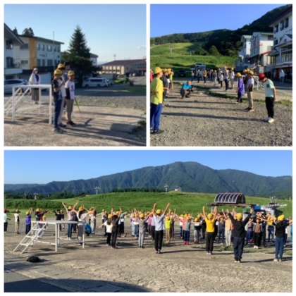 残念ながら音源の調子が悪く、音が途切れてしまい、音なしででのラジオ体操になりました。それでもきっちりできるのは、日頃からの練習の賜物です。